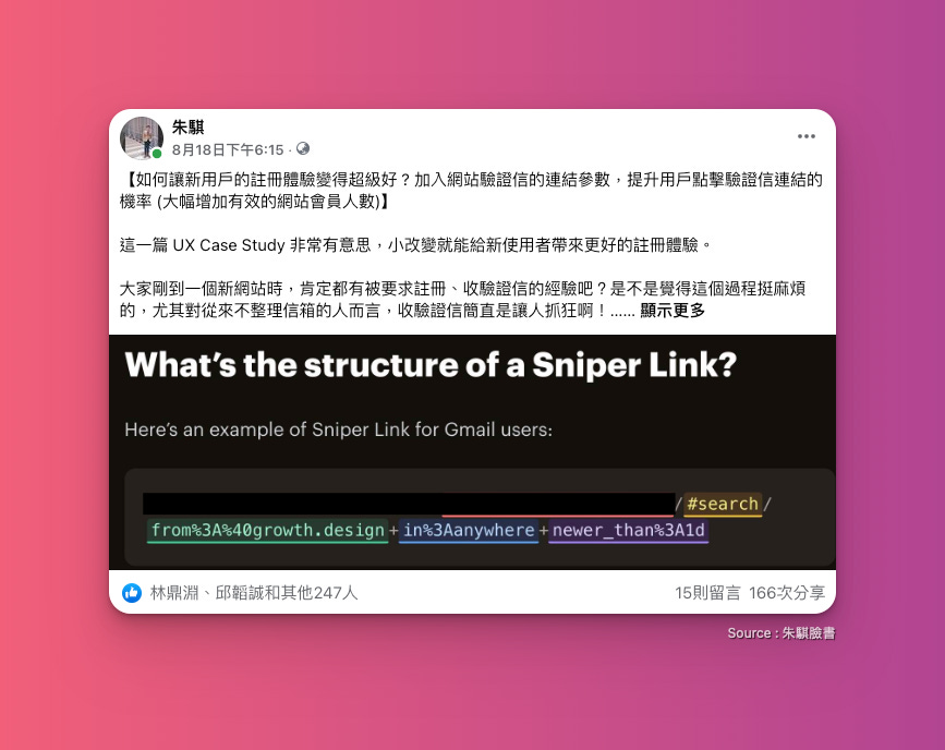 其中一篇在我的個人臉書獲得將近 250 人按讚、160 人的分享,真的嚇慘我了…