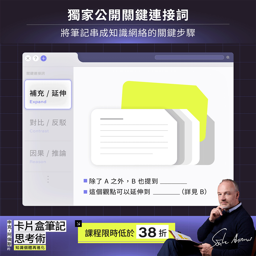 如果你想掌握「連結」這個核心技巧,讓筆記真正發揮價值,我強力推薦你報名這堂《卡片盒筆記思考術》線上課程!