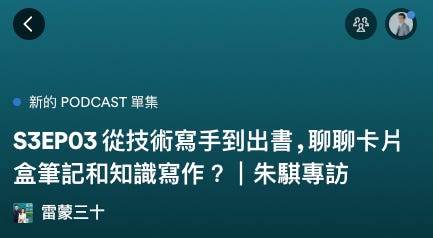 這一集我分享了好多自己的旅程故事,還有出版《知識複利筆記術》的心路歷程。