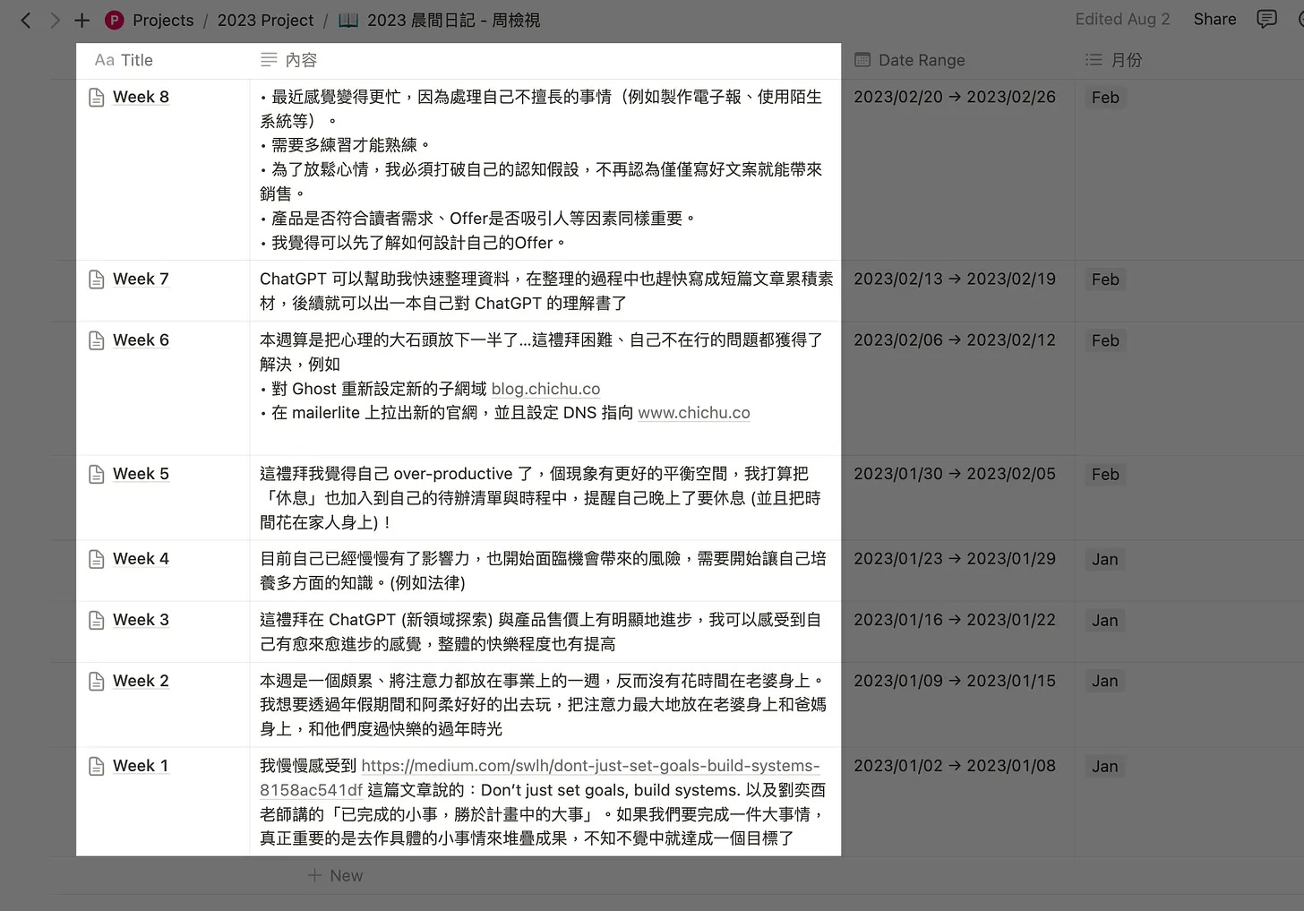 我喜歡使用 Notion 來進行周復盤。