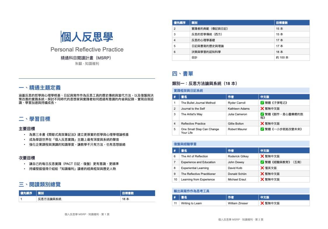 MSRP 是 Sam Rinko 獨創的方法,概念是把研究所學生用來備考的「綜合閱讀清單」方法,重新包裝成任何人都能跟著執行的自學框架。