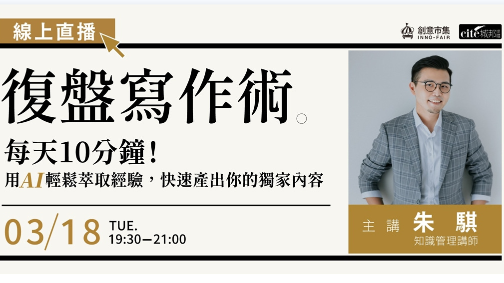 1 套完整寫作方法論,教你怎麼將獨特經驗寫成社群短文、部落格長文、甚至累積成電子書。