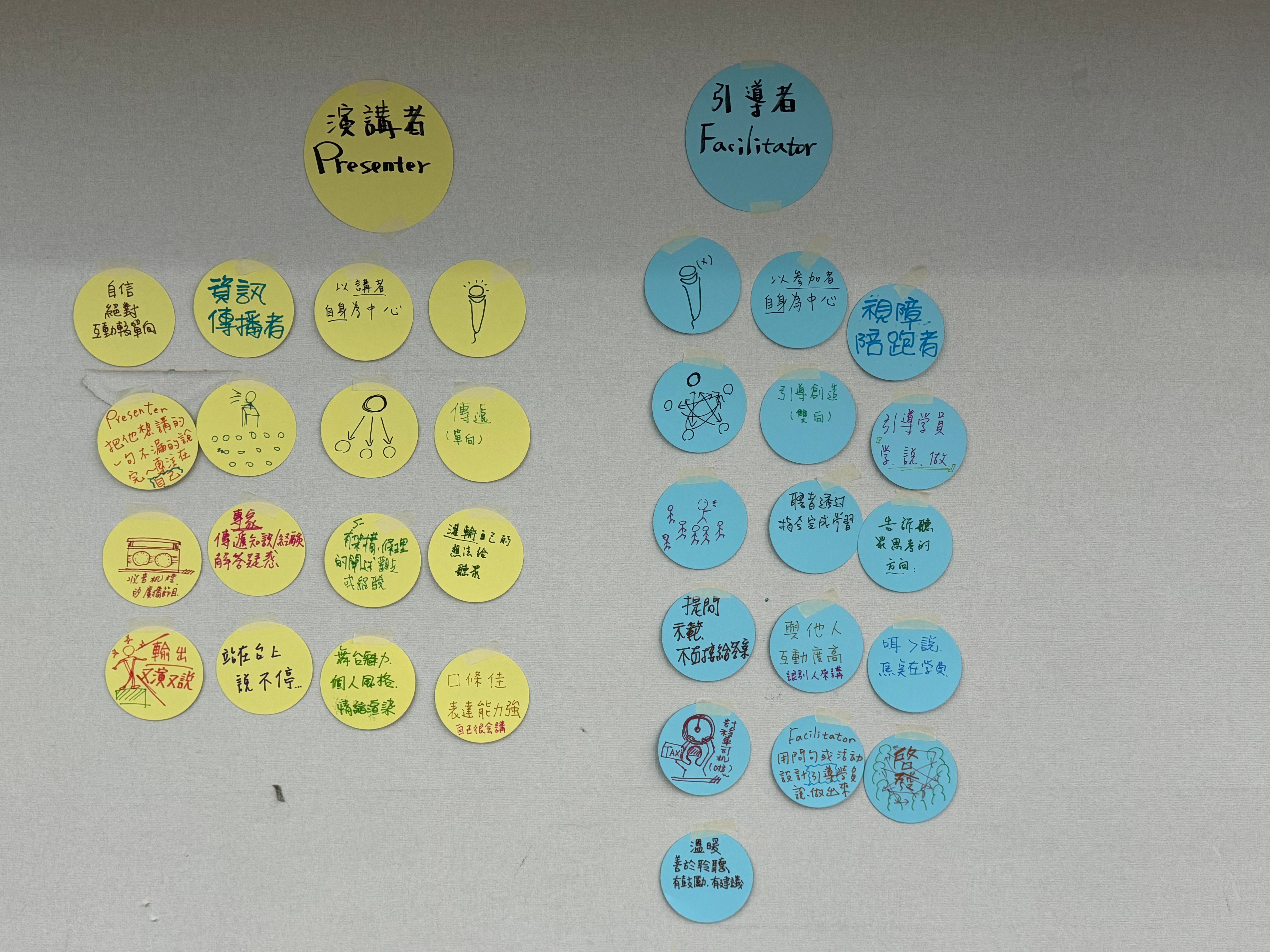 透過這場活動,我們清楚學到「演講者」跟「引導者」的差別。