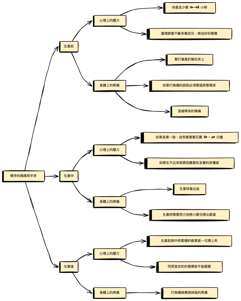 因為在生產的前中後,都有不同的事情操心費力。分別是在生產的前、中、後,需要擔心不同的事情。