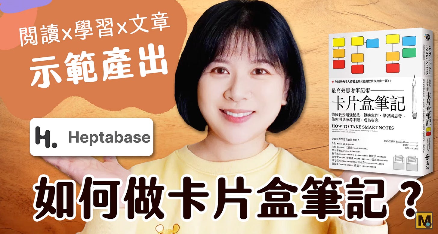 她會跟你分享如何用筆記軟體 Heptabase 實作卡片盒筆記法,產出她的 YouTube 影片腳本!